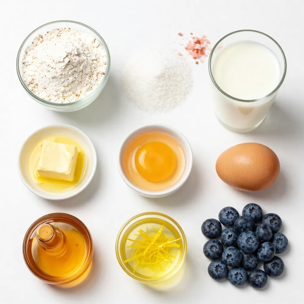 Gathering the right ingredients is key to making Blueberry Lemon Pancake Bites. Start with your dry ingredients. Use one cup of all-purpose flour. Add two tablespoons of granulated sugar, two teaspoons of baking powder, and half a teaspoon of salt. This mix gives the bites their base.