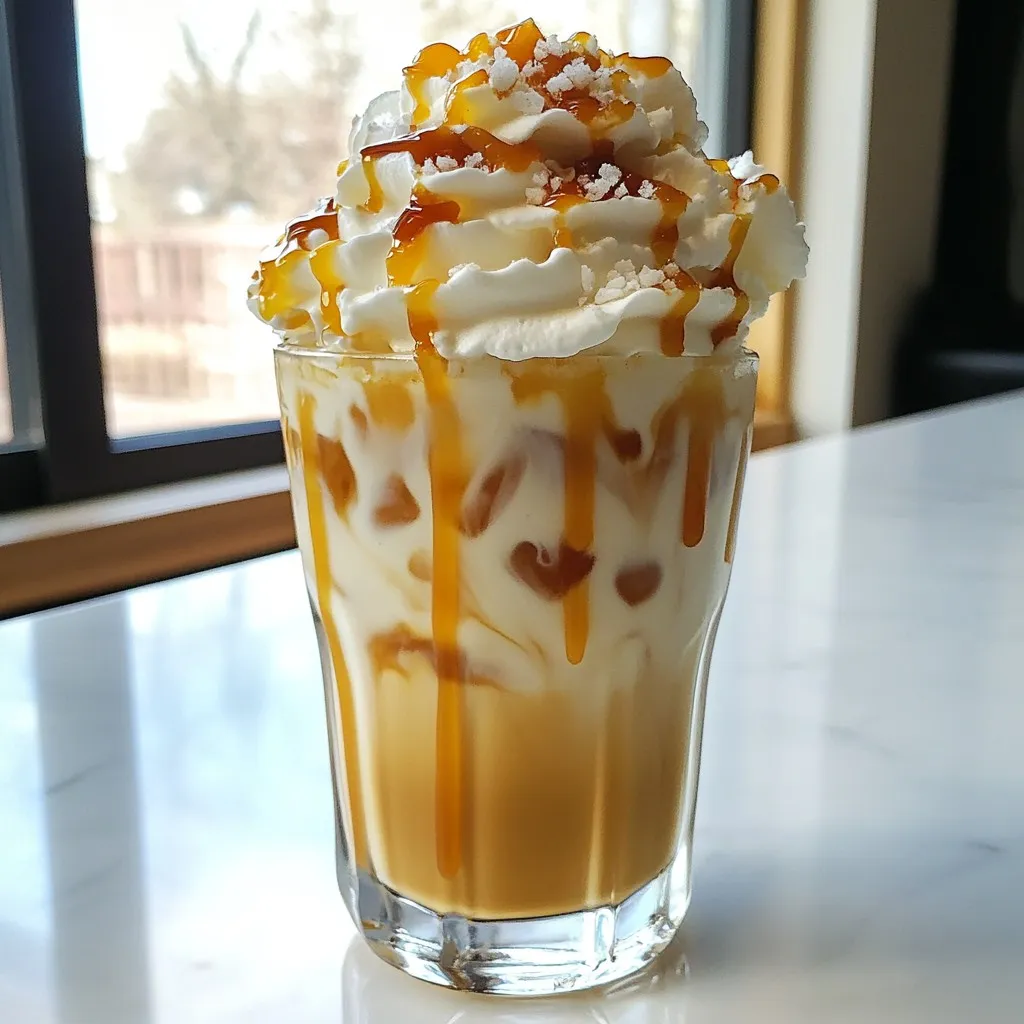 Now it’s time to make your drink look amazing. Gently dollop a generous amount of whipped cream on top. This gives your iced coffee a lovely cloud-like appearance. For a special touch, drizzle extra caramel sauce over the whipped cream. If you want to elevate the flavor, sprinkle a pinch of flaky sea salt on top. This adds a nice balance to the sweetness.