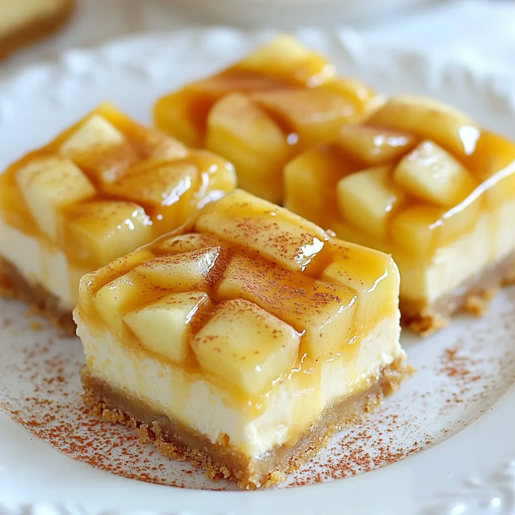 Delicious cheesecake bars with a caramel apple twist, perfect for dessert lovers.