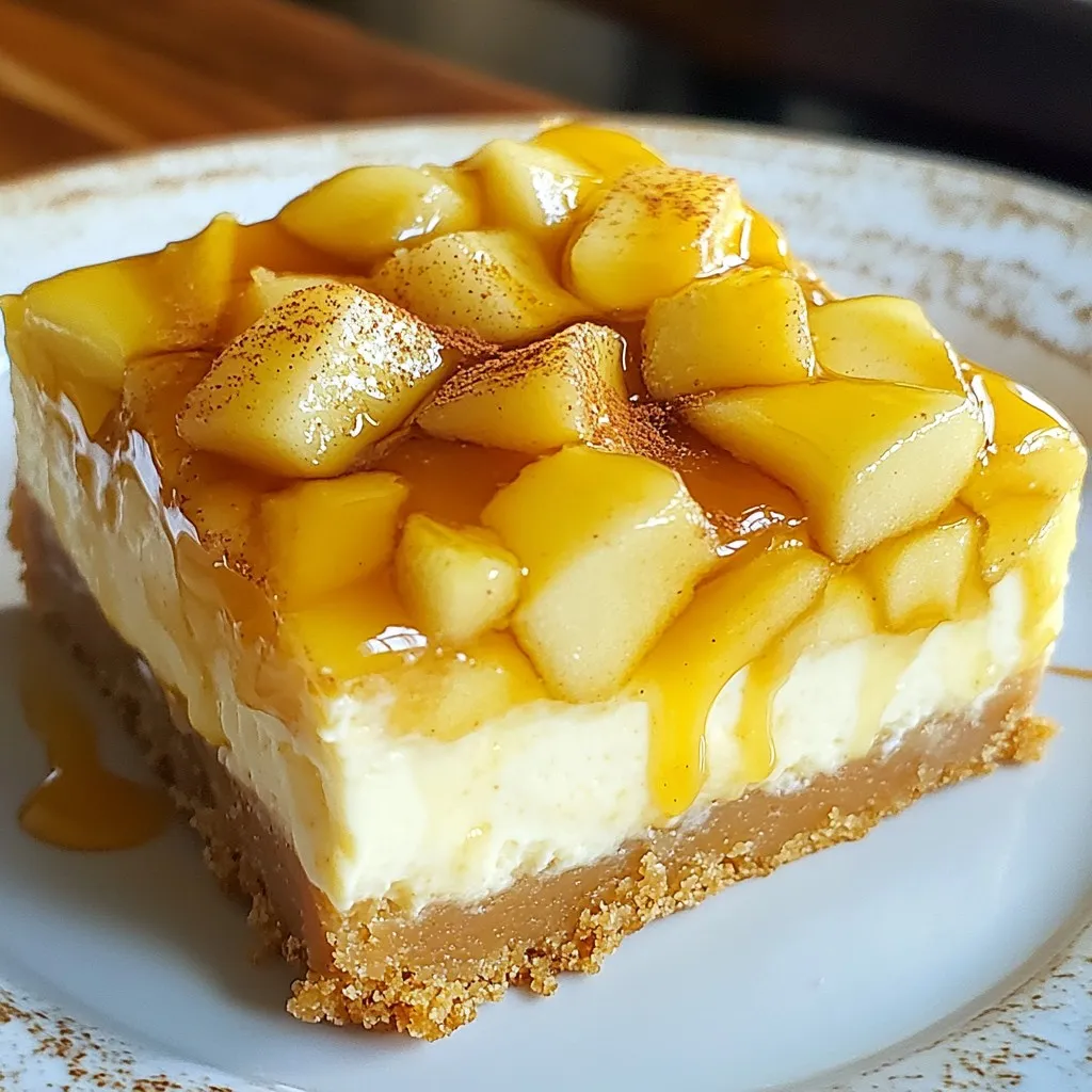 Delicious cheesecake bars with a caramel apple twist, perfect for dessert lovers.