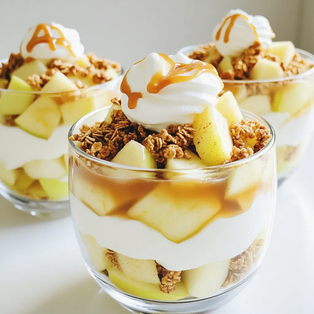 If you want to prep in advance, keep the components separate. Dice apples, mix them with lemon juice and cinnamon, and store them in a bowl. Store the yogurt, granola, and caramel sauce in their own containers. This way, you can quickly assemble the parfaits when you’re ready to eat. It saves time and keeps everything fresh.