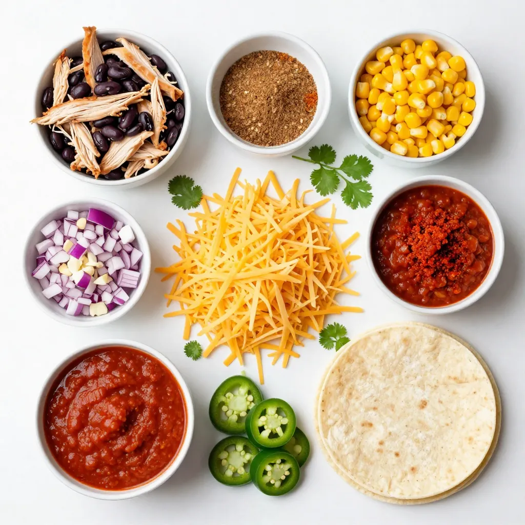 Gathering these ingredients is key to making delicious cheesy chicken enchiladas. You can change some items based on what you like.