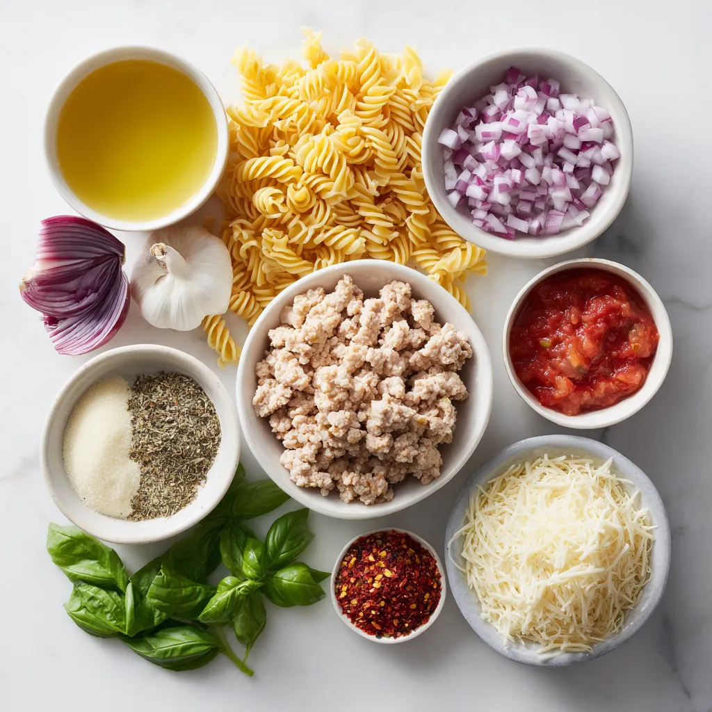 The main ingredients create a solid base for this dish. Ground turkey is lean and tasty. It cooks well and soaks up flavors. Pasta adds heartiness and pairs nicely with the sauce. Olive oil helps sauté the onion and garlic, adding richness. The finely chopped onion and minced garlic bring depth to the meal.