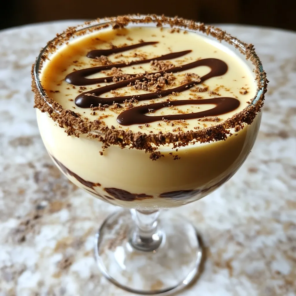 Strain and Serve: Carefully strain the chilled mixture into your prepared glass, allowing the rim to show off its chocolatey goodness.