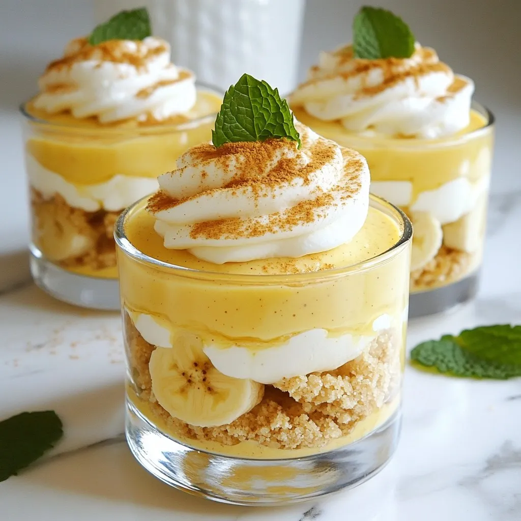 Opt for clear glasses to display the delightful layers of banana and creamy pudding. Consider adding a light sprinkle of additional nutmeg on top for that extra festive touch.