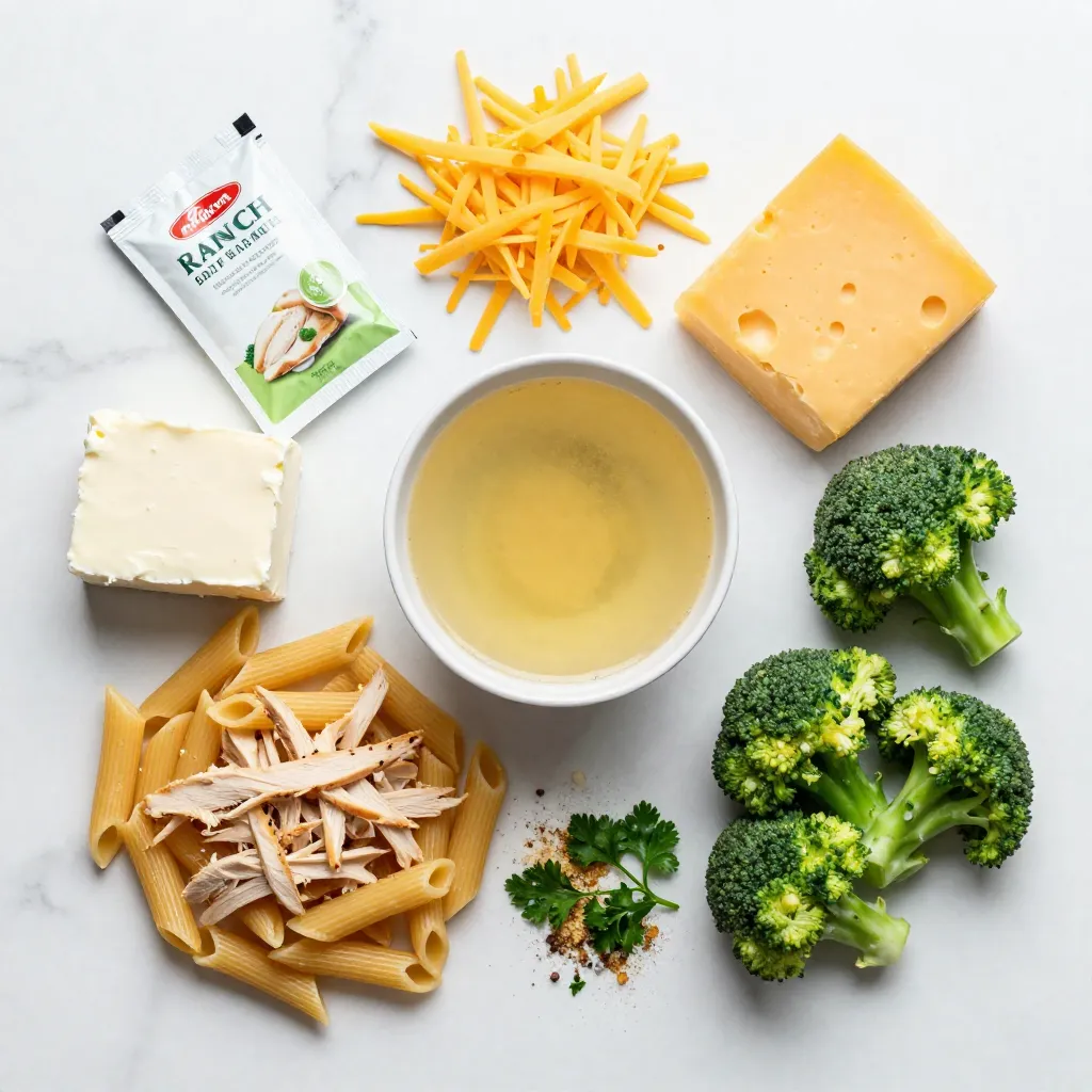 To make Crack Chicken Penne, gather these main ingredients first. The penne pasta brings a nice, chewy texture. Chicken breasts give protein and flavor. Cream cheese and cheddar cheese create a rich, creamy sauce. Chicken broth adds depth. The ranch seasoning mix offers that signature taste. Lastly, broccoli adds a pop of color and nutrition.