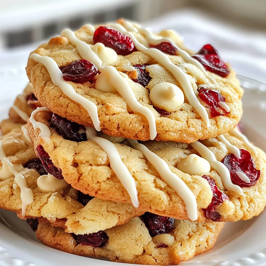 Serve these delightful cookies stacked high on a decorative plate for an inviting display. Drizzle melted white chocolate over the tops for a chic finish, and for a festive touch, garnish with a sprinkle of fresh cranberries on the side or on top.