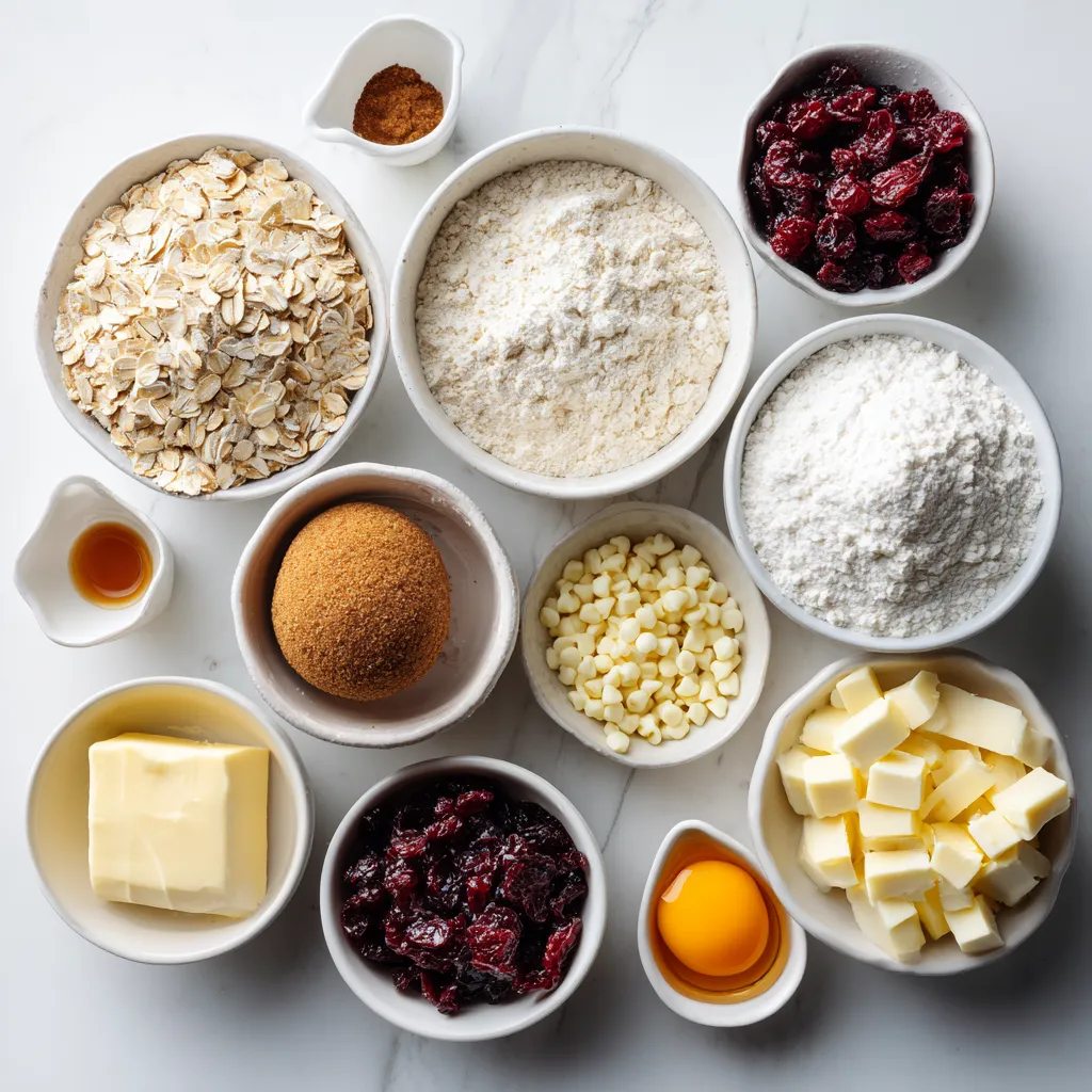 Essential Ingredients for Cranberry White Chocolate Oatmeal Cookies