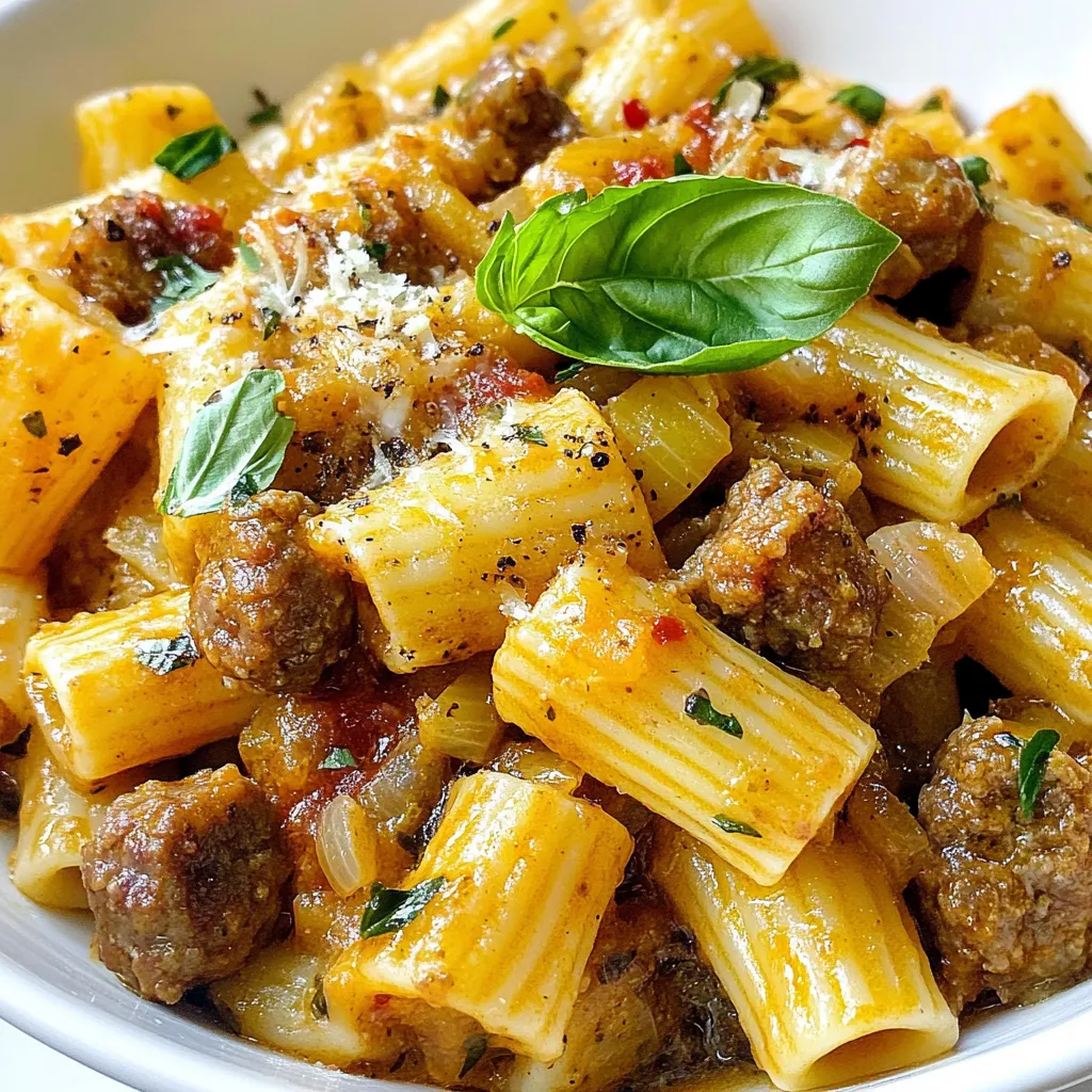 Timing is key to a great meal. Begin cooking the pasta first. While it cooks, brown the sausage. After that, sauté the onion and garlic. This will save time and keep everything hot. Once you combine the pasta with the sauce, let it cook for a few extra minutes. This helps the rigatoni soak up all the flavors.