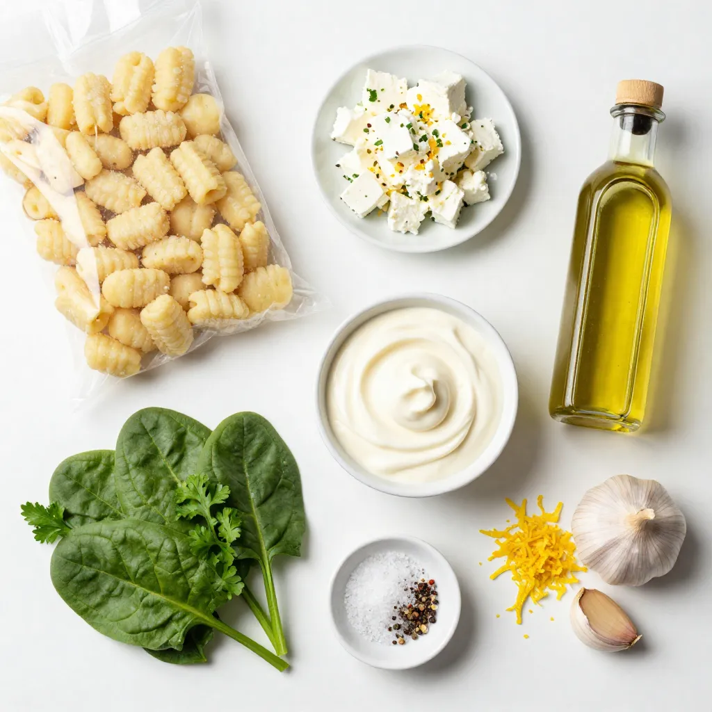 When I make creamy spinach feta gnocchi, I love using good-quality ingredients. Gnocchi serves as the base, and I prefer potato gnocchi for its soft texture. Fresh spinach adds a pop of color and nutrition. Crumbled feta cheese gives a rich, tangy flavor that pairs perfectly with the creamy sauce.