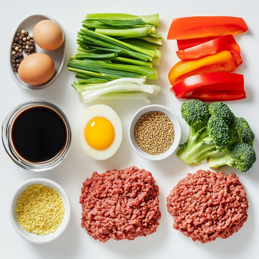 These ingredients create the base for the meatballs. The ground meat gives a tasty protein source. The bread crumbs help bind the meatballs together. Green onions, ginger, and garlic add fresh flavor. The egg acts as a binder too. Soy sauce and sesame oil enhance the umami taste, while five-spice powder adds depth.