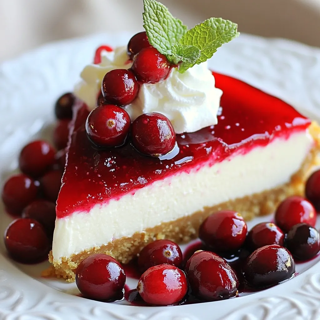 Garnish your cheesecake with fresh mint or a dollop of whipped cream. You can also sprinkle extra cranberries on top. This adds color and flavor. For beverages, coffee or tea pair well with the cheesecake. A rich cup of coffee balances the sweet tartness of cranberries. This dessert works for many occasions. Serve it at family gatherings or holiday parties.