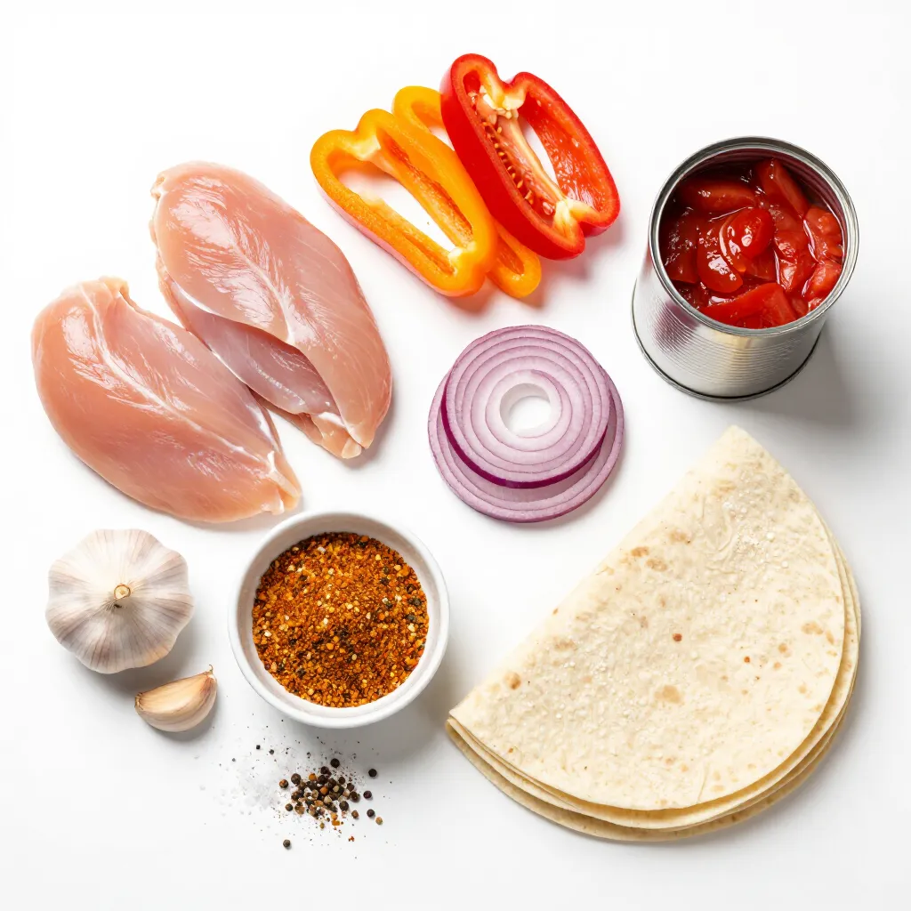 You need a few simple items for these fajitas. Start with boneless, skinless chicken. This cut cooks well and stays juicy. Next, choose a bell pepper. Any color works, so pick your favorite! Then, grab a medium red onion. Its sweetness adds flavor. Finally, don’t forget the canned diced tomatoes. They bring moisture and taste to the mix.