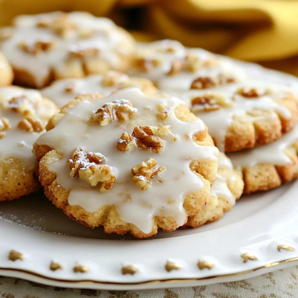 You can choose walnuts or pecans for that nutty crunch. Sour cream adds moisture and tang. Finally, the glaze of powdered sugar and milk makes these cookies shine.