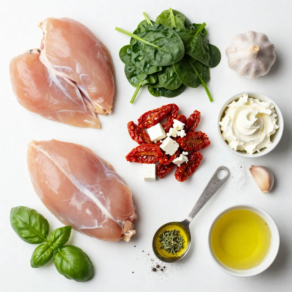 Delicious chicken breasts stuffed with a creamy filling of spinach, sun-dried tomatoes, and feta cheese.