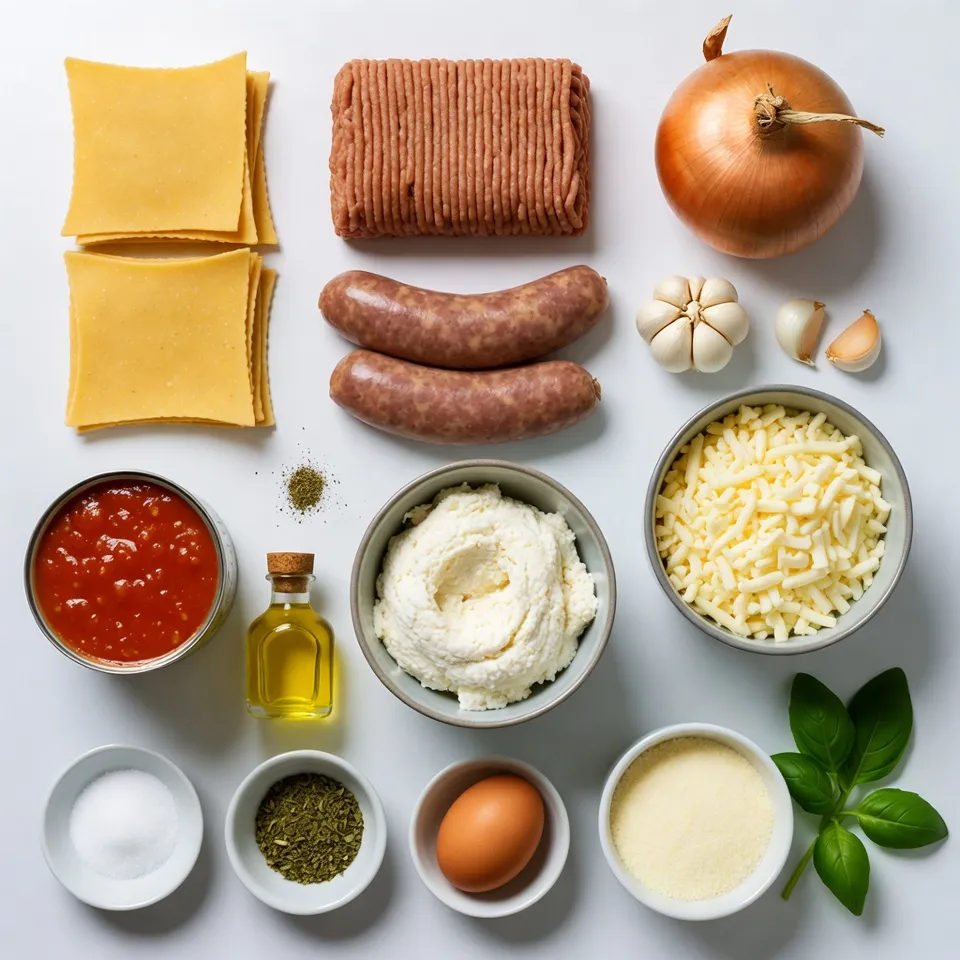 Each ingredient adds its own flavor and texture. The noodles hold everything together, while the meats give it a hearty taste. The onion and garlic create a strong base for the sauce. Crushed tomatoes add moisture and richness. The blend of cheeses provides creaminess and a delicious finish. Seasonings like oregano and basil add a classic Italian touch. Finally, olive oil helps to cook the meat and keep it juicy.