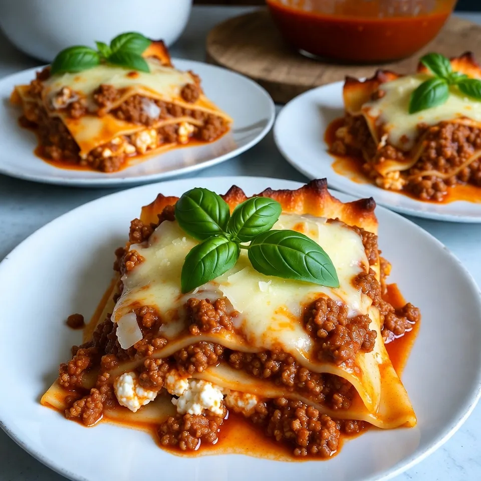 A comforting and delicious lasagna recipe made with layers of pasta, meat sauce, and creamy ricotta.