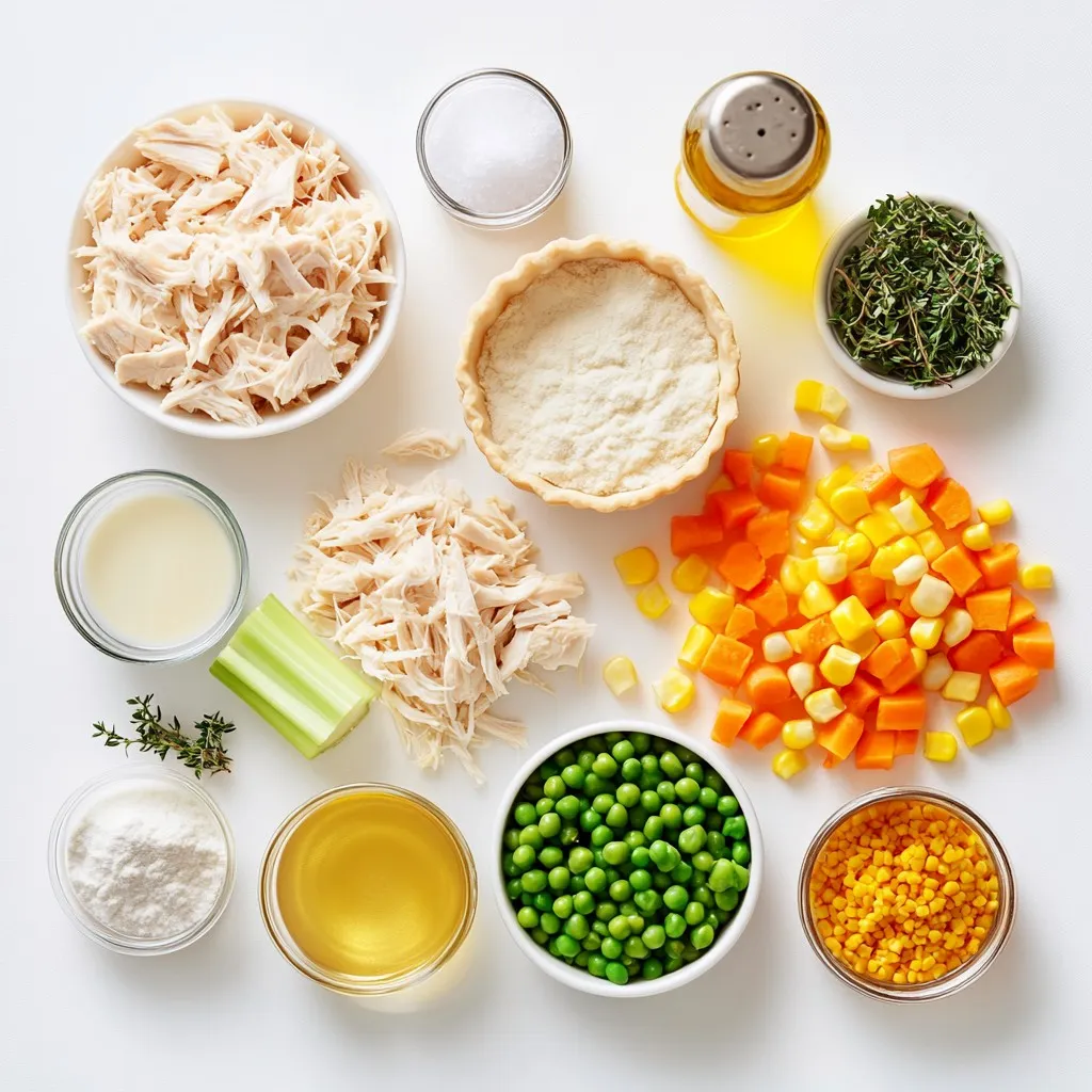 Gather these ingredients, and you are ready to create a cozy chicken pot pie. This dish is perfect for family dinners or a comforting meal on a chilly day.
