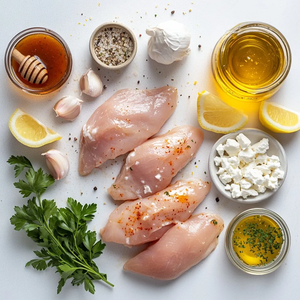 The chicken breasts are the star here. Choose fresh, high-quality chicken for the best flavor. Crumbled feta cheese adds a tangy bite that pairs perfectly with the hot honey glaze.