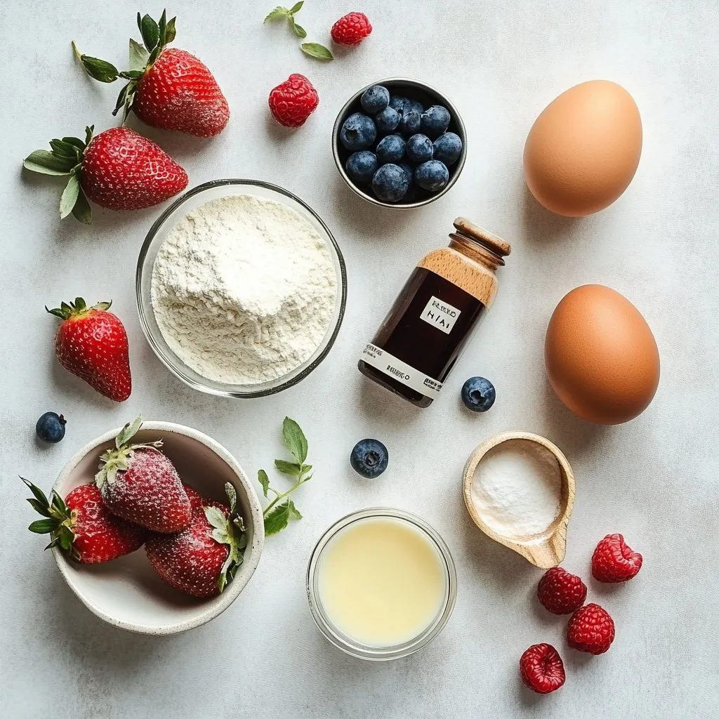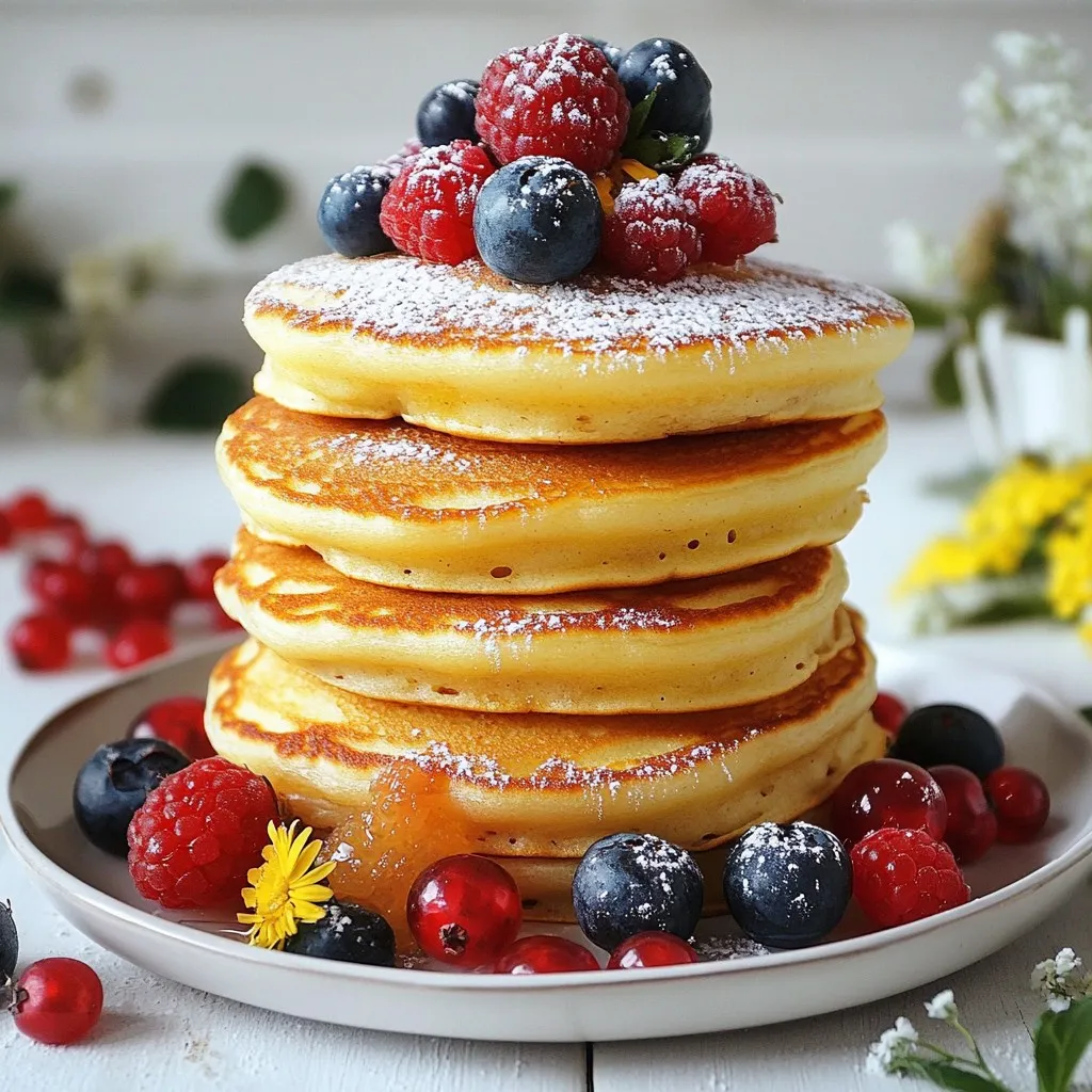 Each ingredient plays a key role. The eggs add structure and fluff. Sugar sweetens and helps the pancakes rise. Vanilla gives a lovely flavor. Milk keeps the batter smooth and moist. Flour and baking powder create that light texture. Butter helps with cooking and adds richness. Finally, use powdered sugar and fresh berries to make your pancakes look and taste amazing. These ingredients come together to make a treat that feels special.