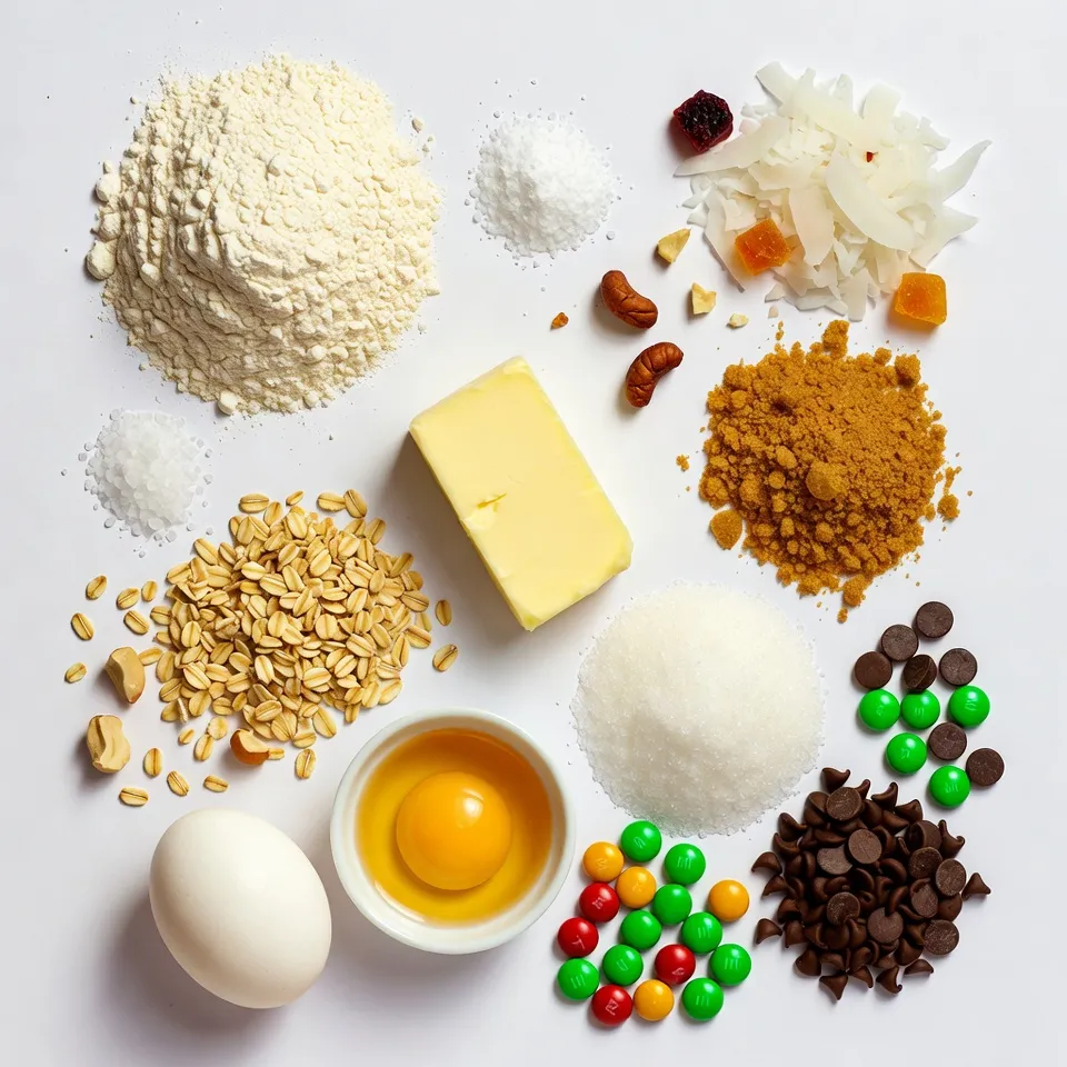 Now, gently fold in the fun stuff! Add 1 cup of rolled oats, ½ cup of shredded coconut, ½ cup of semisweet chocolate chips, ½ cup of white chocolate chips, ½ cup of holiday-themed M&M’s, ½ cup of chopped pecans or walnuts, and ½ cup of chopped dried cranberries or cherries. Make sure everything is spread evenly. Using a cookie scoop or tablespoon, drop rounded dough onto the prepared sheets. Leave 2 inches between each scoop. Bake the cookies for 10 to 12 minutes. You want the edges to be golden and the centers soft.