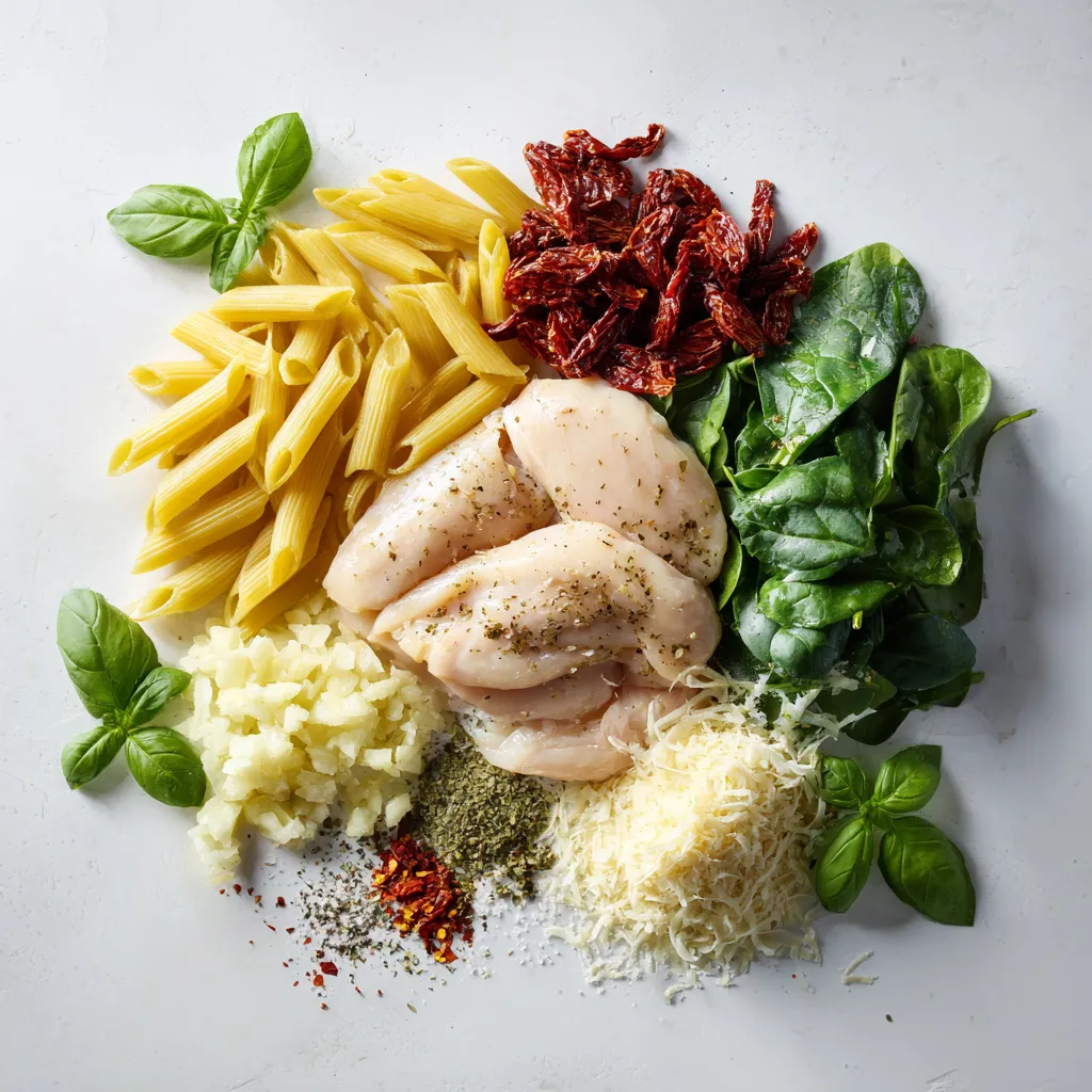 When I cook Marry Me Chicken Pasta, I use simple yet tasty ingredients. First, I grab two boneless, skinless chicken breasts. These provide a nice base for the dish. I also take eight ounces of penne pasta. This pasta holds the creamy sauce well.