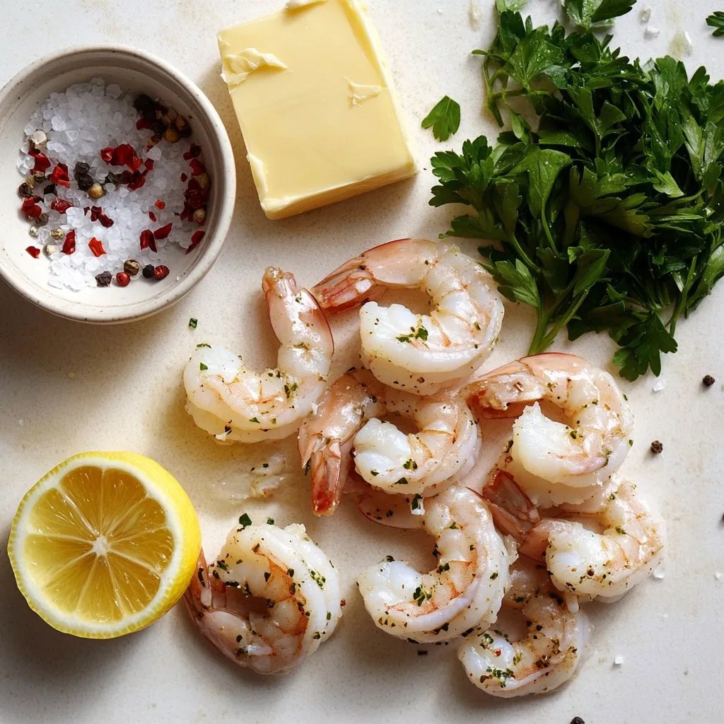 To make Minute Garlic Shrimp Scampi, gather these simple ingredients. Fresh shrimp is the star of the dish. Use large shrimp for the best texture. Fresh garlic adds a punch of flavor. You can use unsalted butter for a creamy base. Red pepper flakes give a nice kick that you can adjust. Lemon zest and juice brighten the dish. Fresh parsley brings a pop of color. You may add linguine or spaghetti if you like pasta. Grated Parmesan cheese makes for a tasty topping.