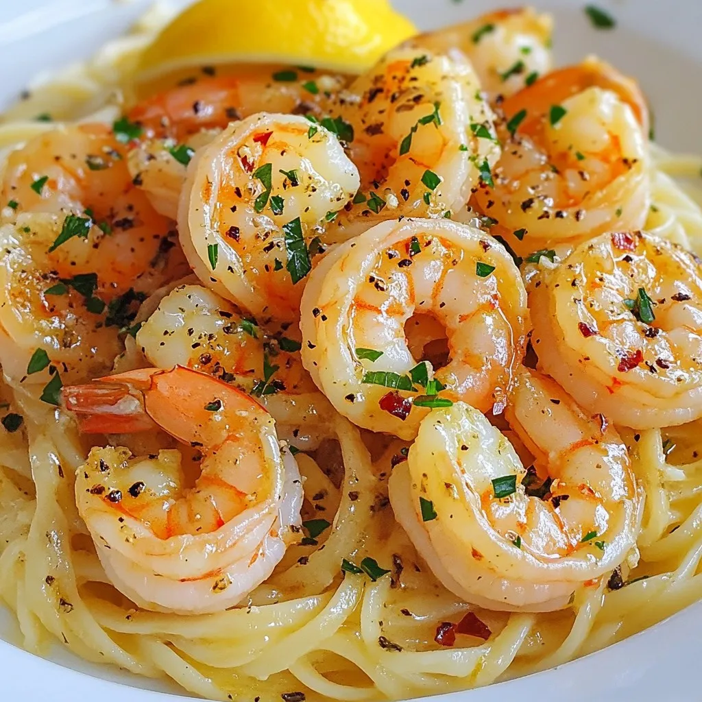 To enhance visual appeal, consider the colors. The bright pink shrimp, green parsley, and yellow lemon look great together. If you want, sprinkle grated Parmesan cheese on top for a creamy touch. It makes the dish look fancy and inviting.