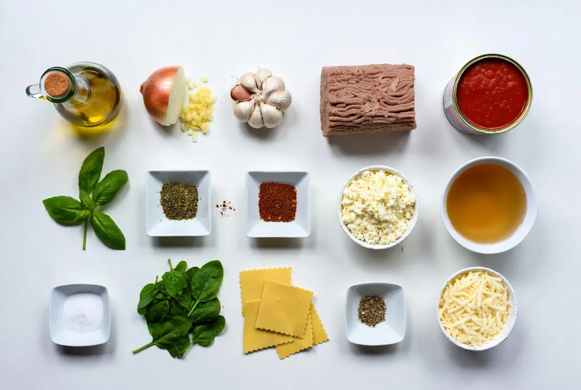 In this lasagna soup, the main ingredients work together to create a rich base. The olive oil adds healthy fat and flavor. Diced onion gives a sweet and savory taste. Minced garlic adds a nice kick. Ground turkey or chicken keeps it lean and protein-packed. The crushed tomatoes bring a tangy depth to the soup.