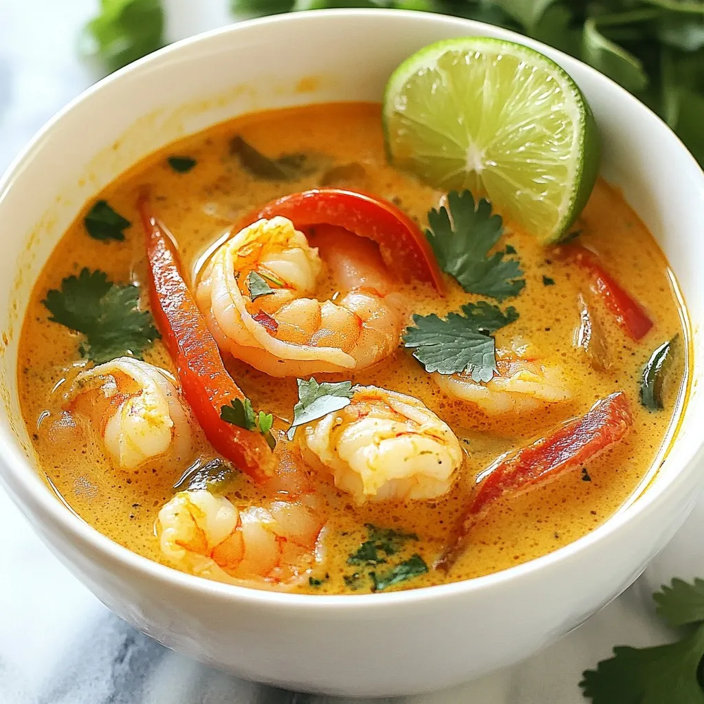 To make quick spicy shrimp soup, you need a few fresh ingredients that pack a punch. Here’s what to gather: - 1 pound large shrimp, peeled and deveined - 4 cups vegetable broth - 1 can (14 oz) coconut milk - 1 red bell pepper, sliced into thin strips - 2 cloves garlic, finely minced - 1 tablespoon fresh ginger, grated - 2 tablespoons red curry paste - 1 teaspoon red chili flakes - 1 tablespoon freshly squeezed lime juice - A handful of fresh cilantro leaves - Salt and pepper to taste These ingredients come together to create a vibrant and flavorful dish. The shrimp brings great flavor, while the coconut milk adds creaminess. The red curry paste and chili flakes give it a spicy kick. You can adjust the heat by adding more or less chili flakes based on your taste. Fresh cilantro adds a bright touch at the end. Each ingredient plays a key role in making this soup quick, spicy, and delicious. {{ingredient_image_2}} 1. Start by heating the vegetable broth in a large pot over medium heat. Bring it to a light simmer. 2. Once simmering, add two cloves of minced garlic and one tablespoon of grated ginger. Stir them for about one minute until they smell great. 1. Next, mix in two tablespoons of red curry paste. This will add a nice kick to the broth. 2. If you like it spicier, add one teaspoon of red chili flakes. You can adjust this based on how hot you want the soup to be. 1. Slowly pour in one can of coconut milk. Stir well to combine it with the broth. 2. Now, add your pound of peeled and deveined shrimp and the sliced red bell pepper. Stir everything together. 3. Cook for about 3 to 5 minutes. Keep an eye on the shrimp. They are done when they turn pink and opaque. This shows they are fully cooked. Ensuring shrimp are perfectly cooked To cook shrimp just right, watch the color. They should turn pink and opaque. Overcooking makes them tough. Cook them for about 3 to 5 minutes. Check for that bright pink color before serving. Adjusting spice levels to taste Start with a small amount of red chili flakes. You can always add more if you like it hotter. Taste the soup as it cooks. This way, you can find the right level of spice for you. How to serve the soup attractively Use deep, colorful bowls for serving. This makes the soup look inviting. Add a lime wedge on the side. It adds a pop of color and flavor. For extra flair, drizzle a little coconut milk on top. Garnishing techniques with cilantro Fresh cilantro adds a bright touch. Scatter a handful of leaves on top just before serving. This not only looks great but also adds fresh flavor. Make sure to use it generously for the best effect. Optional ingredients to spice it up Consider adding sliced jalapeños for more heat. You could also stir in some diced tomatoes for added texture. If you love coconut, add a bit more milk for creaminess. Suggestions for additional toppings Top your soup with crispy fried onions or crushed peanuts. These add great crunch and flavor. You can also serve it with a side of crusty bread to soak up every delicious drop. Pro Tips Freshness Matters: Always use fresh shrimp for the best flavor and texture. If using frozen shrimp, ensure they are completely thawed and drained before cooking. Customize Your Spice: Adjust the amount of red chili flakes based on your spice tolerance. For a milder soup, start with less and add more as needed. Balance the Flavors: Taste the soup before serving and adjust seasoning with lime juice, salt, or pepper to achieve a perfect balance between spicy, salty, and tangy. Make it Heartier: For a more substantial meal, consider adding vegetables like spinach, bok choy, or mushrooms, or serve the soup with rice or noodles on the side. {{image_4}} You can switch up the shrimp with other seafood. Try scallops or fish for a new taste. For a vegetarian soup, use mushrooms or tofu instead of shrimp. They add nice texture and flavor. You can also use vegetable broth for a lighter base. Explore different curry pastes to change the flavor. Green curry paste gives a fresh taste. You can also try yellow curry for a milder option. Adding fruits like pineapple or mango can bring sweetness. Nuts like cashews can add a nice crunch and richness. Serve your soup with rice or crusty bread. These pair well and soak up the broth. A fresh salad can add a nice balance to the meal. Consider a side of roasted veggies for extra nutrition and flavor. To store leftovers, let the soup cool first. Pour it into a container with a tight lid. Use glass or BPA-free plastic containers for best results. The soup stays fresh in the fridge for up to three days. You can freeze the soup for future meals. Allow it to cool completely before freezing. Use freezer-safe bags or containers. When you're ready to eat, thaw it in the fridge overnight. Reheat on the stove or in the microwave. Stir well to ensure even heating. The soup lasts about three days in the fridge. In the freezer, it stays good for up to three months. Always check for any changes in smell or color before eating. To peel shrimp, hold the shrimp in one hand. With the other hand, start at the head. Gently pull off the shell in one piece. Next, to devein, use a small knife. Make a shallow cut along the back to expose the vein. Use the knife to lift it out, then rinse the shrimp. This keeps the shrimp clean and tasty. Yes, you can! To make it vegetarian, replace the shrimp with tofu or chickpeas. For a vegan option, use vegetable broth and coconut milk as before. You can add more veggies like mushrooms or zucchini for extra flavor. The soup will still be rich and delicious. You can replace coconut milk with almond milk or cashew cream. These options provide a creamy texture but have a different flavor. If you're looking for something lighter, use low-fat milk or unsweetened soy milk. Just remember, the taste may change a bit. Adjusting spice is easy! Start with less red chili flakes if you prefer mild. You can always add more later. For extra heat, try a dash of hot sauce