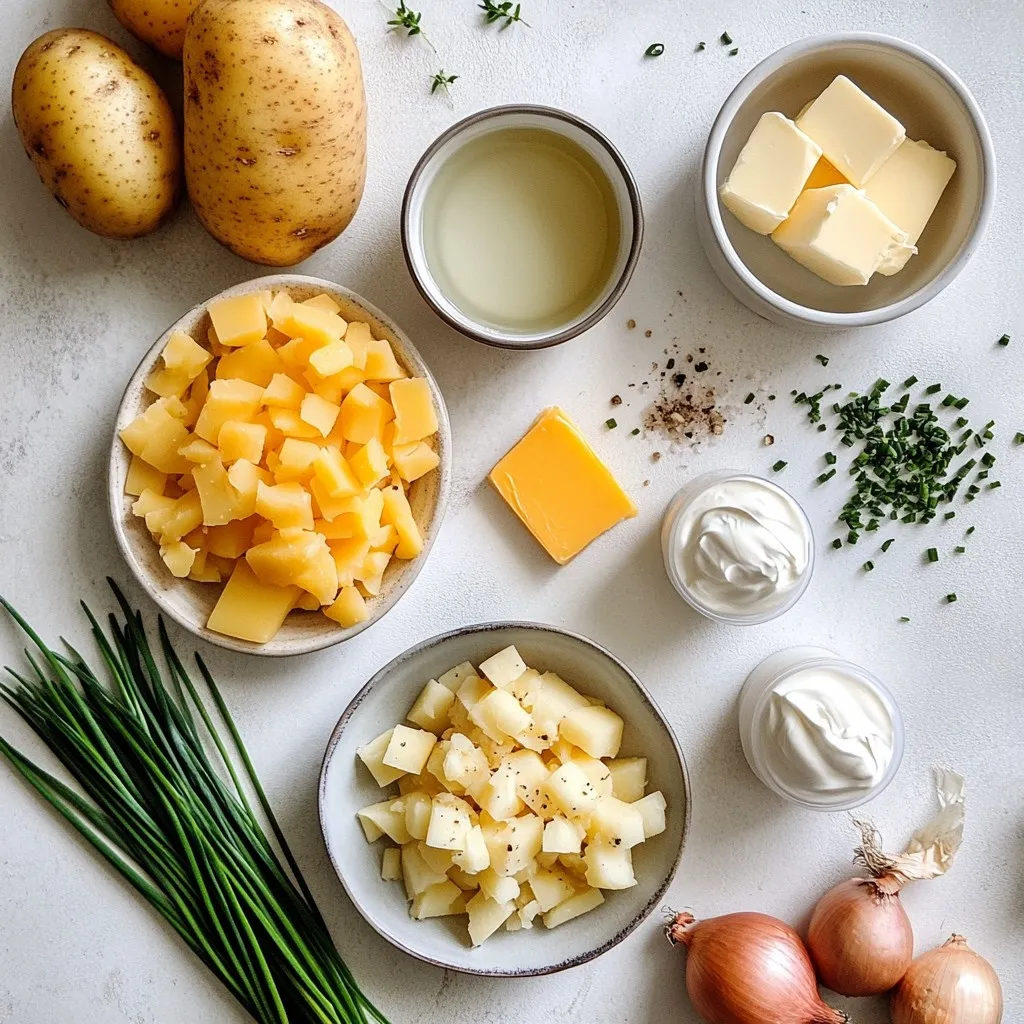 Let’s gather the key ingredients for this Cheddar Garlic Potato Soup. You will need: