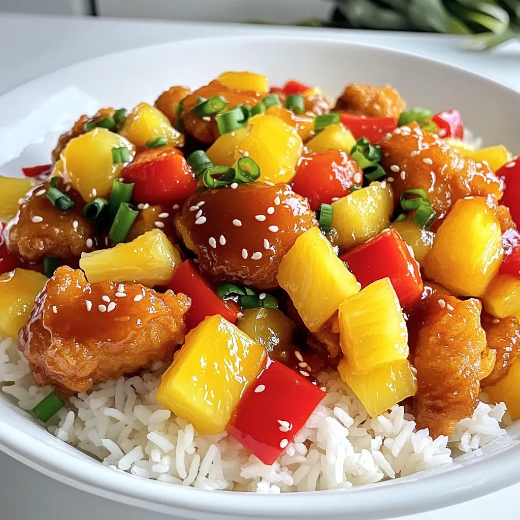 - 1 pound boneless chicken thighs, cut into bite-sized pieces - 1/2 cup cornstarch - 2 tablespoons vegetable oil - 1 red bell pepper, diced - 1 yellow bell pepper, diced - 1 cup pineapple chunks (fresh or canned) - 1/2 cup granulated sugar - 1/2 cup apple cider vinegar - 1/4 cup ketchup - 1 tablespoon soy sauce - 1 tablespoon freshly grated ginger - 2 cloves garlic, minced - 1 teaspoon sesame oil - Salt and freshly ground black pepper to taste - Cooked jasmine rice, for serving These ingredients come together to create a sweet and tangy dish. The chicken thighs add richness, while the pineapple gives a juicy burst of flavor. The bell peppers add color and crunch. - Chopped green onions - Toasted sesame seeds These garnishes enhance the look and taste of your meal. Green onions add freshness, while sesame seeds bring a nutty flavor. If you can't find chicken thighs, try chicken breast instead. For a gluten-free option, use tamari in place of soy sauce. You can swap apple cider vinegar with rice vinegar for a milder taste. If you want more veggies, add broccoli or snap peas for extra crunch. You can also use any type of fruit, like mango, for a different twist. Remember, cooking is about being creative. Feel free to mix and match ingredients to suit your taste! Start by seasoning your chicken thighs with salt and freshly ground black pepper. This step adds flavor. Next, cut your chicken into bite-sized pieces for easy cooking. Now, coat each piece with cornstarch. This helps to create a crispy texture. Make sure to shake off any extra cornstarch. Set the chicken aside for cooking. Heat vegetable oil in a large skillet over medium-high heat. Wait until the oil shimmers before adding the chicken. Place the chicken pieces in a single layer. Cook them for about 5 to 7 minutes. Turn them occasionally to brown evenly. Once golden, transfer the chicken to a plate and set it aside. In the same skillet, add the diced red and yellow bell peppers. Sauté them for 3 to 4 minutes. Stir frequently until they soften and become colorful. Next, add the pineapple chunks, grated ginger, and minced garlic. Cook for another 2 to 3 minutes. This helps to release the flavors. Now, make the sauce. In a bowl, whisk together sugar, apple cider vinegar, ketchup, soy sauce, and sesame oil. Mix until smooth and well combined. Pour the sauce mixture into the skillet with the vegetables. Bring it to a gentle simmer. Let it cook for about 2 minutes until the sauce thickens slightly. Now, return the cooked chicken to the skillet. Gently toss everything together. Make sure the chicken is well coated with the sauce. Heat through for an additional 2 to 3 minutes. Serve the sweet and sour chicken over fluffy jasmine rice. Garnish with chopped green onions and toasted sesame seeds. Enjoy your colorful and tasty meal! To get the best taste from your sweet and sour chicken, focus on balance. You want sweet, tangy, and savory flavors. Use fresh pineapple for a bright, juicy taste. The apple cider vinegar gives a nice tang. The sugar adds sweetness, while soy sauce brings depth. Taste your sauce as you mix. Adjust the sugar or vinegar if needed. This way, you create a flavor that shines. For crispy chicken, start with cornstarch. This helps create a crunchy crust. Coat each piece well, but shake off the extra. Make sure your oil is hot before adding chicken. If the oil is too cool, the chicken steams instead of fries. Cook in batches if needed. Don’t crowd the pan. This keeps the heat up and the chicken crispy. Presentation makes your dish more appealing. Serve the chicken in a colorful bowl. A white bowl can help the colors pop. Add a mound of fluffy jasmine rice as a base. Sprinkle chopped green onions and toasted sesame seeds on top. For an eye-catching touch, add a wedge of fresh pineapple or lime. This not only adds color but also enhances the flavor. {{image_4}} You can easily make a vegetarian version of sweet and sour chicken. Instead of chicken, use tofu or tempeh. These options soak up flavor well and provide a nice texture. 1. Tofu: Press firm tofu to remove extra water. Cut it into cubes and coat it with cornstarch. Cook it in oil until golden brown. 2. Tempeh: Cut tempeh into bite-sized pieces. Sauté it in oil until crispy. The sauce remains the same. You get a delicious dish that even non-vegetarians will love! Sweet and sour chicken has many regional twists. Each area adds its own flair. Here are a few to try: - Hawaiian style: Use fresh pineapple and add bell peppers. This version is bright and tropical. - Thai style: Incorporate fish sauce and fresh basil for a herbal touch. It gives a unique, savory flavor. - Chinese style: Stick to traditional ingredients like bell peppers and onion. This version focuses on balance and harmony. Each variation keeps the sweet and sour flavor but adds a unique twist. You can also switch up the sauce for new tastes. Here are some ideas: - Mango sauce: Replace pineapple with mango for a sweeter, fruitier flavor. - Orange sauce: Use fresh orange juice and zest instead of vinegar. It adds a nice citrus kick. - Spicy sauce: Add chili paste or sriracha to the original sauce for a spicy kick. These alternatives keep the dish exciting and help you explore new flavors in your kitchen. To keep your sweet and sour chicken fresh, follow these steps. First, let the chicken cool to room temperature. Then, transfer it to an airtight container. Make sure to seal it tightly. Store the container in the fridge. This way, the chicken stays juicy and flavorful for up to three days. When you are ready to enjoy your leftovers, reheat them properly. You can use the microwave or a skillet. If using the microwave, place the chicken in a microwave-safe bowl. Cover it loosely with a lid or a damp paper towel. Heat in short bursts, about one minute at a time, until warm. If using a skillet, add a splash of water for moisture. Heat over medium heat, stirring occasionally, until hot. Freezing sweet and sour 
