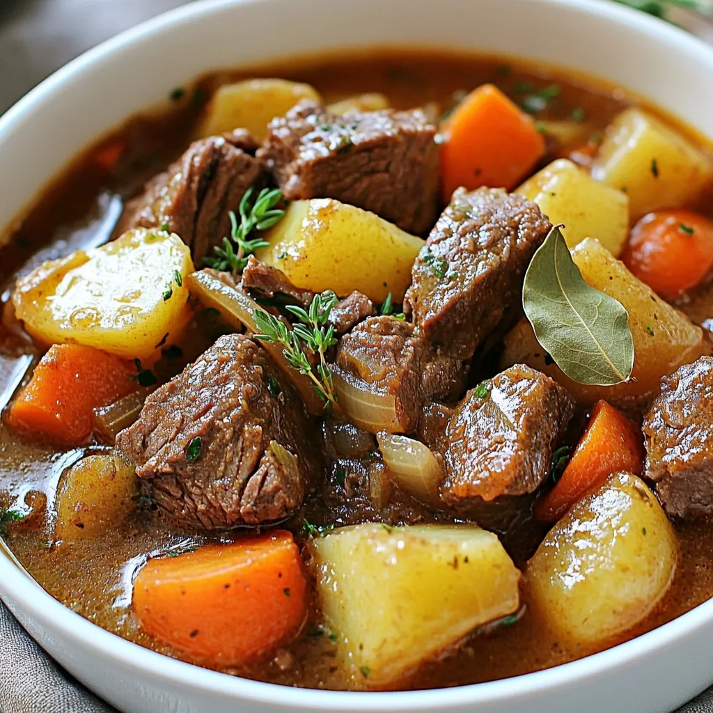 A comforting and flavorful beef stew cooked slowly to perfection.