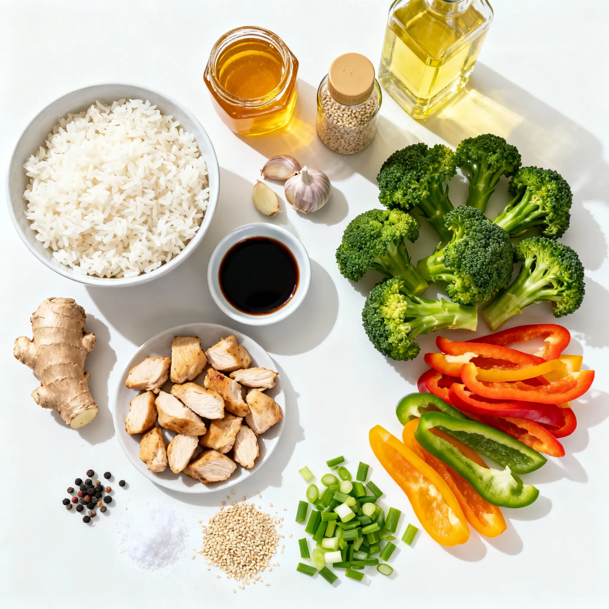 Gathering these ingredients is easy. You can find jasmine rice at most stores. Boneless, skinless chicken thighs are juicy and cook quickly. The marinade adds a sweet and savory taste. Soy sauce brings depth, while honey adds a nice touch of sweetness. Fresh garlic and ginger give the dish its character.
