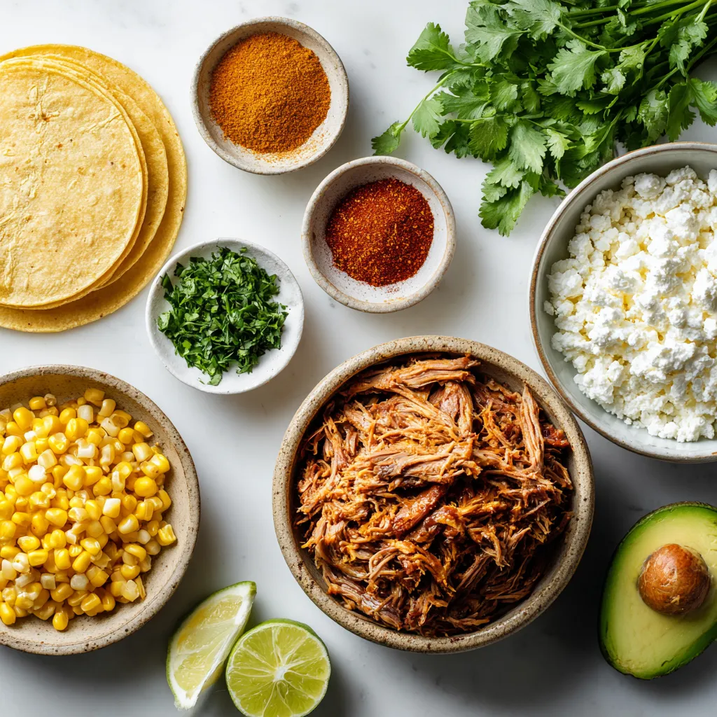 The main ingredients create a tasty taco. The brisket offers rich flavor. Fresh corn adds sweetness. Queso fresco gives a creamy texture. The spices bring warmth and depth.