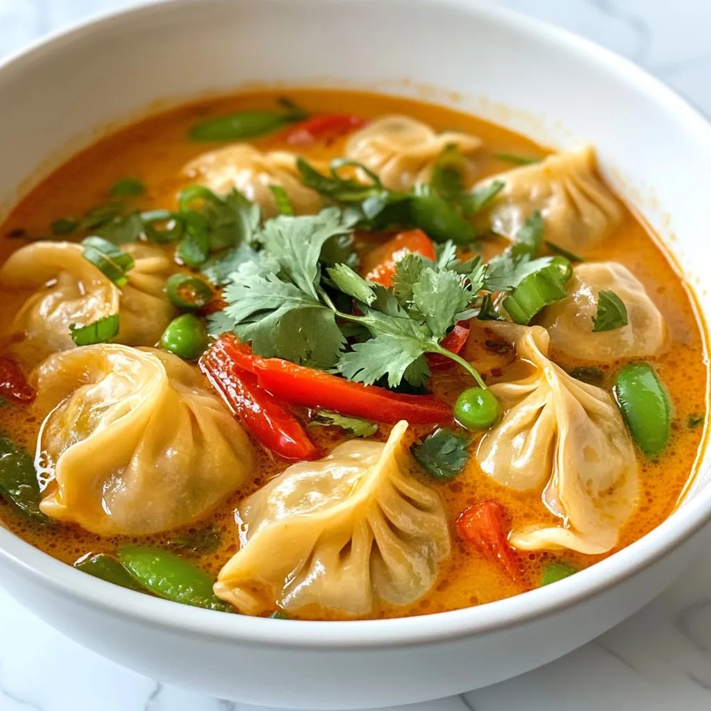To make Thai Potsticker Soup, you will need a few key ingredients. Here’s a detailed list: - 20 store-bought dumplings (potstickers) - 4 cups vegetable broth - 1 can (400ml) coconut milk - 1 tablespoon red curry paste - 1 tablespoon soy sauce - 1 tablespoon fresh lime juice - 1 tablespoon fresh ginger, finely grated - 2 cloves garlic, minced - 1 red bell pepper, thinly sliced - 1 cup snap peas, trimmed and halved - 1 cup bean sprouts - Fresh cilantro, for garnish - Sliced green onions, for garnish - Optional: Sliced chili for an extra kick Each ingredient adds its own special touch. The potstickers bring a nice, chewy texture. The coconut milk gives a creamy base that balances the spice of the red curry paste. Fresh lime juice adds brightness, and the ginger and garlic bring depth to the broth. You can also play with the veggies. Snap peas give a nice crunch, while the red bell pepper adds sweetness. Bean sprouts add freshness at the end. Don’t forget the garnishes! They add color and flavor. {{ingredient_image_2}} - Step 1: Heat a splash of oil in a large pot over medium heat. Add minced garlic and grated ginger. Sauté for about 1 minute until fragrant. - Step 2: Stir in the red curry paste. Mix it well with the garlic and ginger for another minute. This helps the flavors bloom. - Step 3: Gradually add the vegetable broth and coconut milk. Stir continuously to combine them well. Bring this mix to a gentle simmer, looking for small bubbles. - Step 4: Once simmering, add the soy sauce and fresh lime juice. Taste the broth and adjust as you like. - Step 5: Carefully place the potstickers into the simmering broth. Let them cook for about 3-4 minutes until they are hot and tender. - Step 6: Toss in the sliced red bell pepper and halved snap peas. Cook for about 2 minutes to keep them bright and crisp. - Step 7: Finally, add the bean sprouts to the soup. Cook for just 1 minute to keep them crunchy. - Step 8: Serve the soup hot in bowls. Garnish with fresh cilantro, sliced green onions, and optional chili for a spicy kick. - How to choose the best potstickers Select potstickers that are fresh and well-made. Look for a nice seal. Check for even browning on the sides. You can use chicken, pork, or vegetable dumplings. Choose the flavors you love. - Adjusting seasoning for personal preference Taste your broth as you cook. If it needs more flavor, add soy sauce. Want it tangier? Add more lime juice. You can also add a bit of salt. Adjust the taste to suit your likes. - Ideas for making a spicier version To add heat, mix in sliced chili peppers or chili paste. You can also use hot sauce. Start with a small amount, then taste. Increase it until you find your ideal spice level. - Recommended side dishes to complement the soup Serve this soup with a side of spring rolls or a fresh salad. You can also pair it with rice for a filling meal. A simple cucumber salad adds a nice crunch. Enjoy the mix of flavors and textures! Pro Tips Use Fresh Ingredients: Fresh vegetables and herbs enhance the flavor and texture of the soup, making it more vibrant and delicious. Adjust Spice Levels: If you prefer a milder soup, use less red curry paste or choose a milder variety. For more heat, add extra chili slices. Cook Potstickers Carefully: Ensure that the potstickers are heated through without overcooking them, which can make them too soft. Garnish Generously: A good garnish of cilantro and green onions adds freshness and a pop of color, making the dish more appealing. {{image_4}} You can swap store-bought dumplings for homemade potstickers. This gives you control over flavors and fillings. Try making a mix of pork, chicken, or veggies. Each filling adds a new twist to the soup. Using different vegetables can also change the dish. You can add mushrooms, carrots, or baby corn. These veggies add color and crunch. They also enhance the soup's flavor and nutrition. You might even try adding bok choy or spinach for more greens. To make this soup vegan, use vegetable broth and coconut milk. Replace the potstickers with tofu or veggie dumplings. You can also add more beans or lentils for protein. This keeps the dish hearty and filling. For gluten-free versions, check your soy sauce. Look for gluten-free soy sauce or tamari. Ensure your dumplings are gluten-free, too. Many brands offer this option. This way, everyone can enjoy this tasty soup, no matter their diet. To keep your Thai potsticker soup fresh, store it in the refrigerator. Use an airtight container for best results. It will stay good for about three days. If you want the soup to last longer, freeze it. Pour the cooled soup into freezer-safe bags or containers. Leave space at the top since the soup will expand. You can freeze it for up to three months. When you are ready to eat the soup, reheating it is easy. The best way is to use a pot on the stove. Pour the soup in and heat it over medium heat. Stir gently to avoid burning. You can also use a microwave. Transfer the soup to a microwave-safe bowl. Heat it in short bursts, stirring in between. This helps it heat evenly without losing quality. Always check that it is hot all the way through before serving. Can I use frozen potstickers? Yes, frozen potstickers work great in this soup. Just add them to the broth without thawing. They will cook as the soup simmers. What can I substitute for coconut milk? You can use almond milk or soy milk if you want a lighter option. For a creamier taste, try heavy cream or half-and-half. Each will change the flavor slightly. How long does this soup last in the fridge? This soup can last for about 3 to 4 days in the fridge. Make sure to store it in a sealed container to keep it fresh. Is it possible to make it ahead of time? Yes, you can prepare the soup ahead of time. Just store it in the fridge and reheat it when you’re ready to eat. What are some popular side dishes to serve with? Some great side dishes include spring rolls, a fresh salad, or steamed rice. These add great