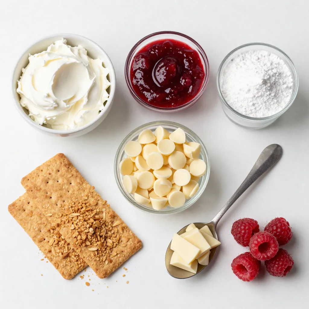 Complete list of ingredients for White Chocolate Raspberry Cheesecake Balls